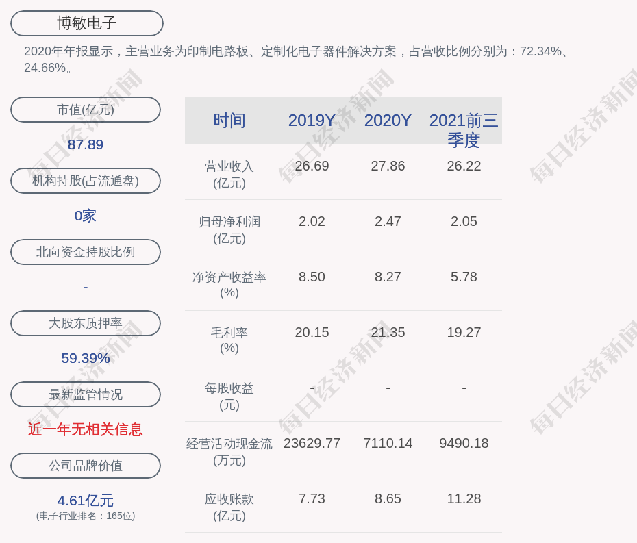 2020年年報顯示,博敏電子的主營業務為印制電路板、定制化電子器件解決方案,占營收比例分別為:72.34%、24.66%。