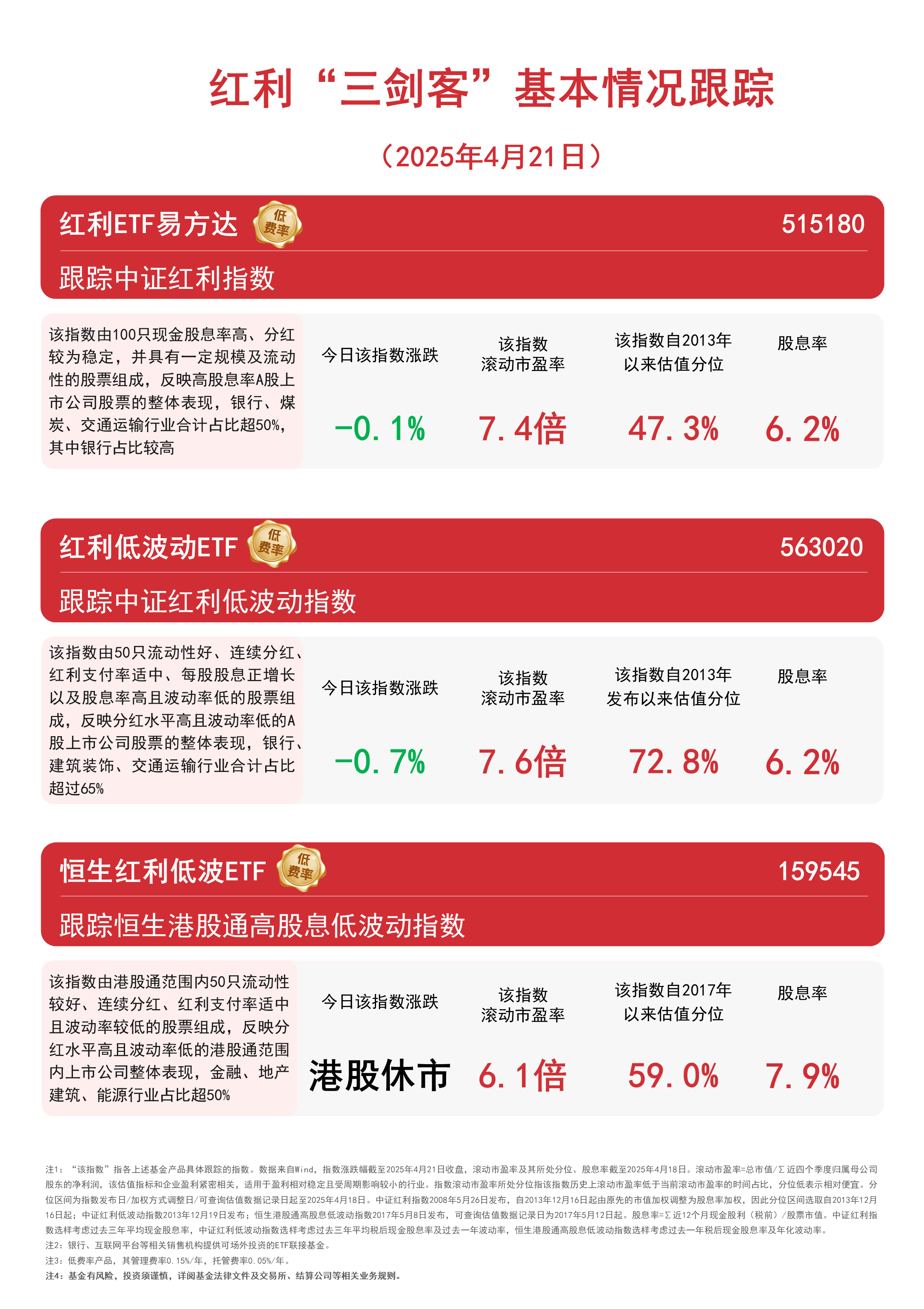 截至收盤,中證紅利指數下跌0.1%,中證紅利低波動指數下跌0.7%。
