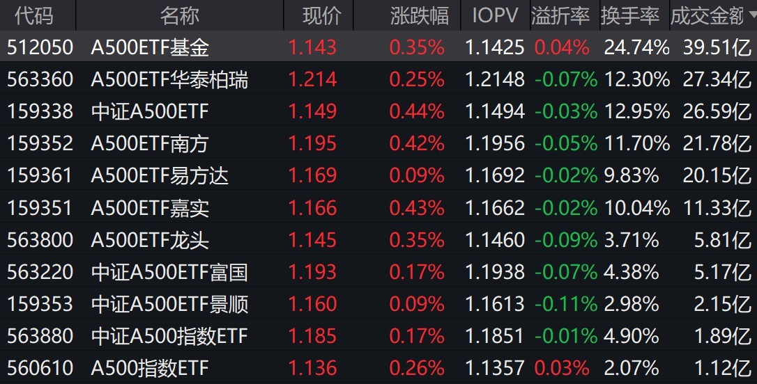市場早盤弱勢震蕩,中證A500指數上漲0.32%,3只中證A500相關ETF成交額超26億元