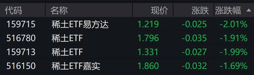 受盤面影響,稀土ETF跌約2%。