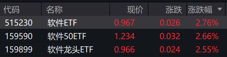 受重倉(cāng)股上漲影響,軟件相關(guān)ETF漲超2%。