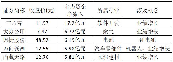 從主力資金來看,今日漲停板個股中,主力資金凈流入金額排名前5的個股分別為三六零、大眾公用、恩捷股份、萬向錢潮、西藏天路。