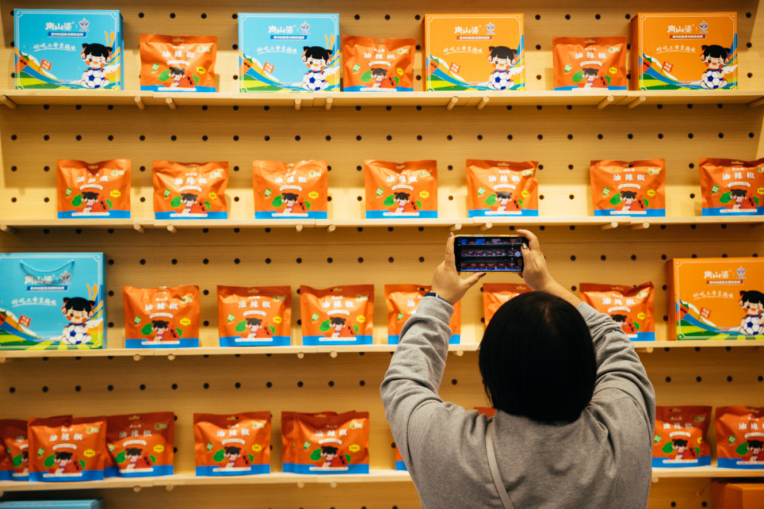 成為“村超”戰略合作伙伴后,南山婆便迅速組織了密集的產品攻勢,從酸湯底料到即食小吃,二十余款“村超定制”美食短時間內密集亮相;美食體驗店更是直接開進球場旁,讓觀賽游客在吶喊間隙就能嘗到地道貴州風味。