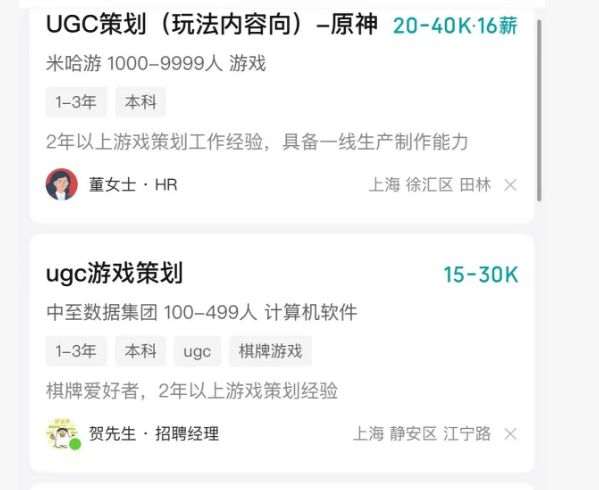 在這顛覆性數據背后,是廠商正扎堆布局游戲UGC。近日,《每日經濟新聞》記者從BOSS直聘平臺最新招聘動態信息中發現,“游戲UGC策劃”相關崗位招聘熱度居高不下,米哈游、鷹角網絡等頭部企業開出高薪搶人。