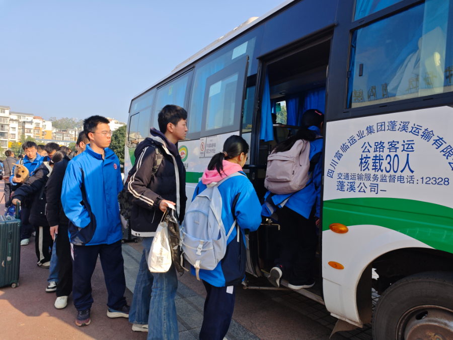 11月28日,星期五,初冬的暖陽溫柔地灑在青春的校園。當天15時,幾輛客車緩緩駛入遂寧市蓬溪中學,停靠在德才廣場。隨著下課鈴聲的響起,歸家心切的學子,快步朝廣場的客車走去。