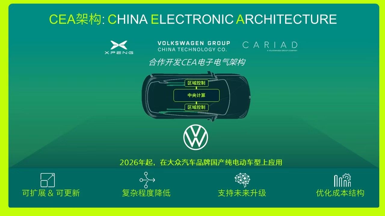 同時,大眾與地平線的合作也邁向新階段。12月8日,在2025地平線技術生態大會上,大眾與地平線合資公司“酷睿程(CARIZON)”的CEO韓鴻銘透露,大眾的自研芯片將基于地平線最新的BPU架構打造,算力可達500至700 TOPS,旨在為接入未來的視覺與大語言模型做準備。尤為關鍵的是,該芯片將與大眾和小鵬聯合研發的CEA電子電氣架構“完美適配”,支持L2+高階輔助駕駛及L3、L4級別自動駕駛。