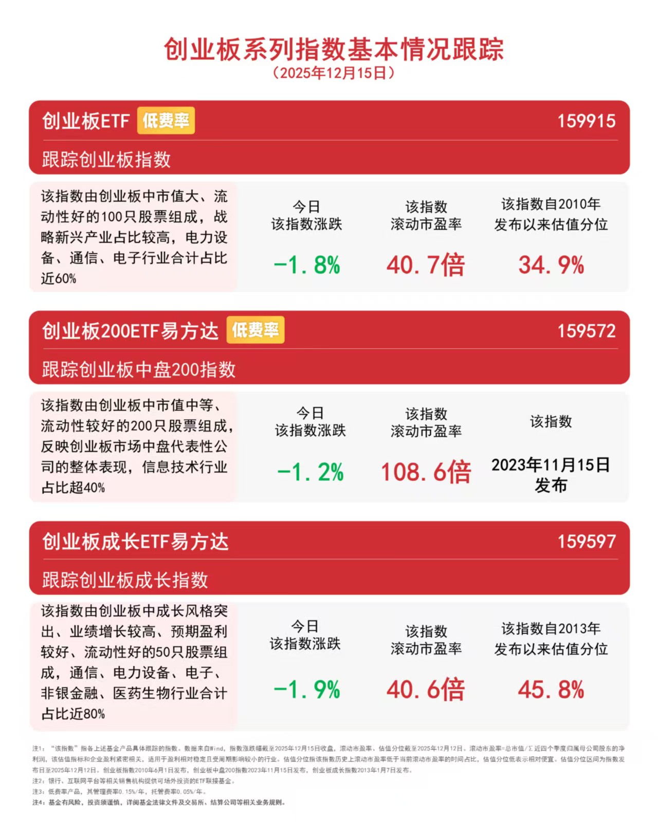 截至收盤,創(chuàng)業(yè)板中盤200指數(shù)下跌1.2%,創(chuàng)業(yè)板指數(shù)下跌1.8%,創(chuàng)業(yè)板成長指數(shù)下跌1.9%,相關(guān)ETF獲資金逆勢加倉,創(chuàng)業(yè)板ETF(159915)獲1.4億份凈申購。