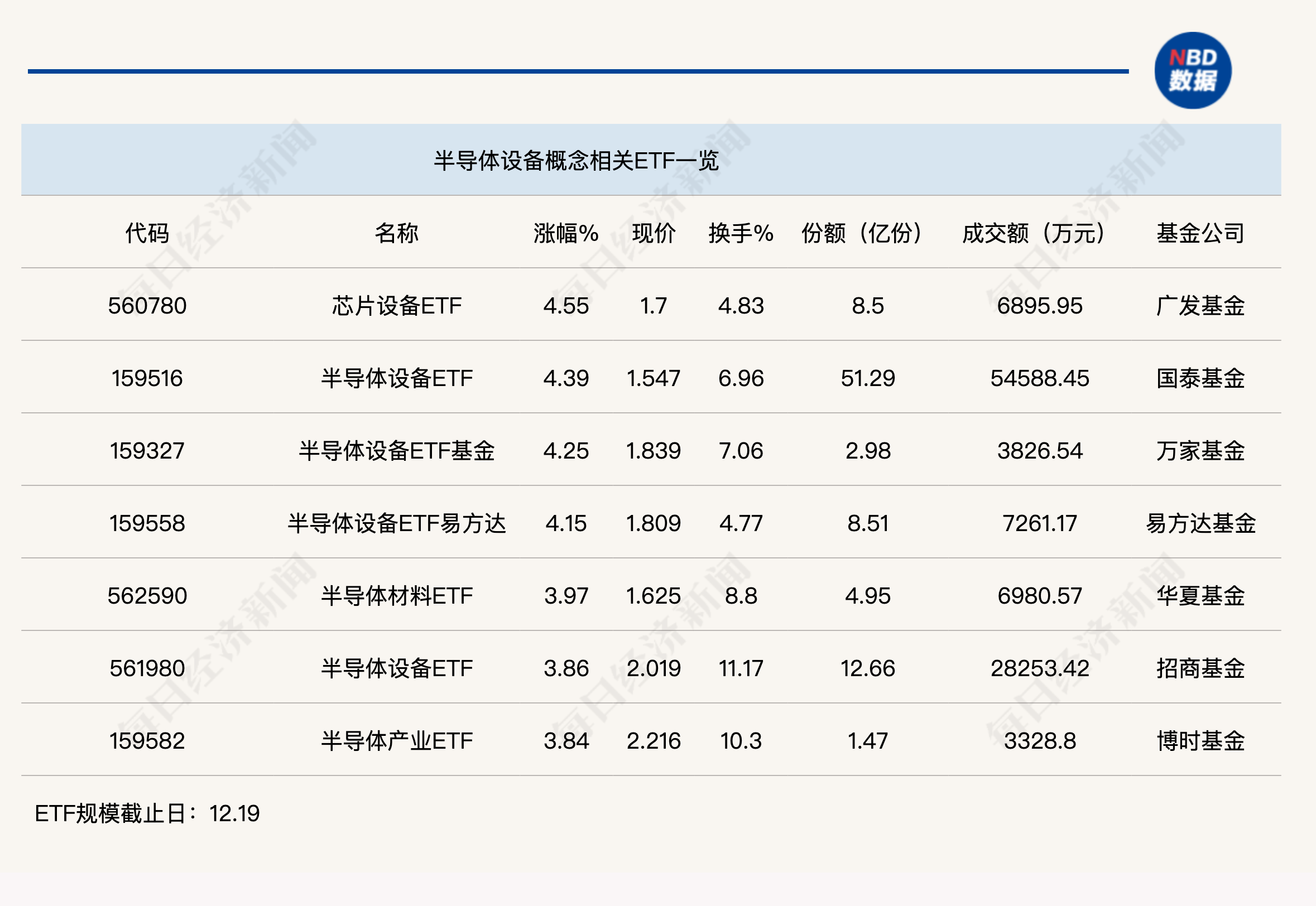 行業ETF風向標丨芯片類ETF放量明顯,4只半導體設備ETF半日漲幅超4%