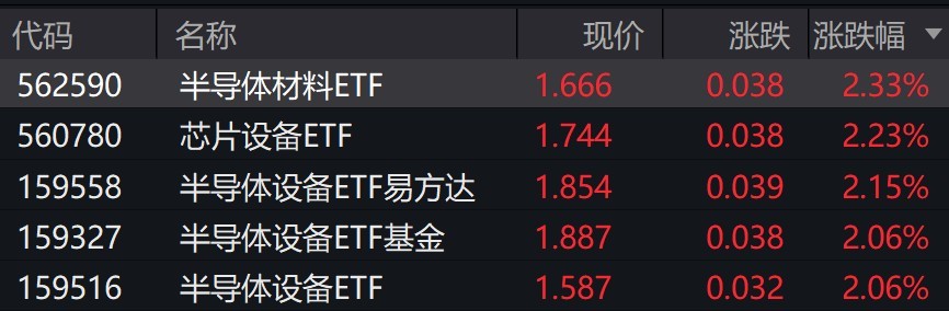 受盤面影響,半導體設備相關ETF漲超2%。